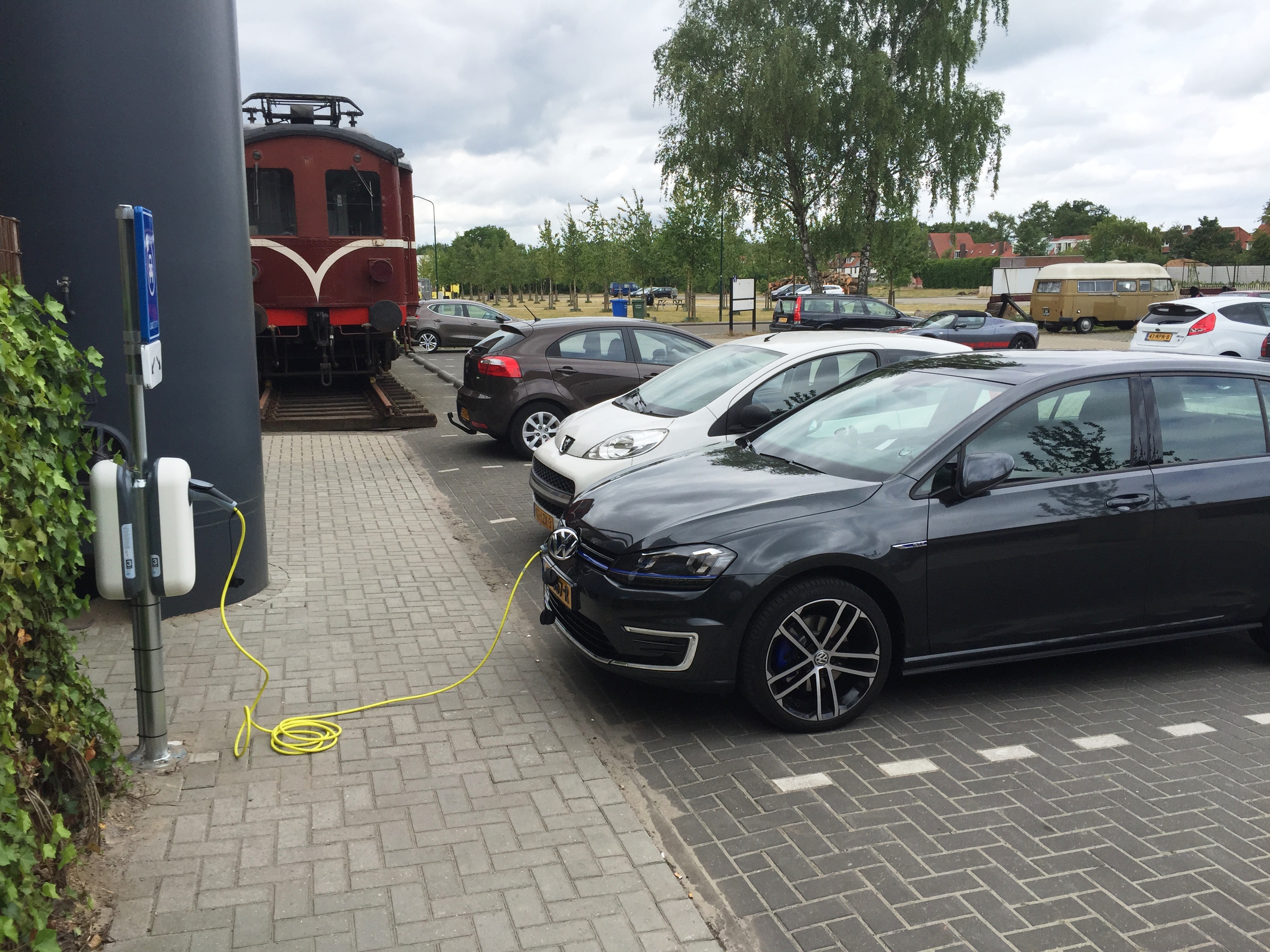 Old meets new op het terrein De Wagenwerkplaats in Amersfoort. Het historische spoorcomplex beschikt sinds kort over een diverse laadpunten voor elektrische auto’s.